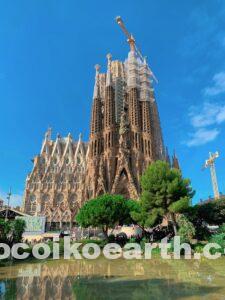 ガウディ広場の湖越しに写真を取れば、湖に映る綺麗なサクラダ・ファミリアの全体像を撮影することができます。