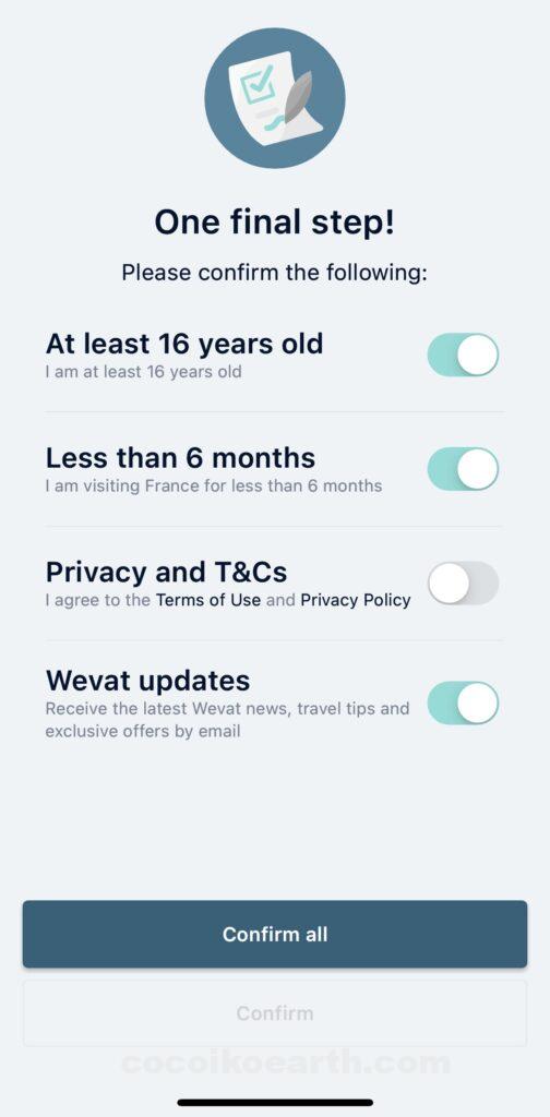 - Parivacy and T&Cs :適宜、利用規約を確認してチェック