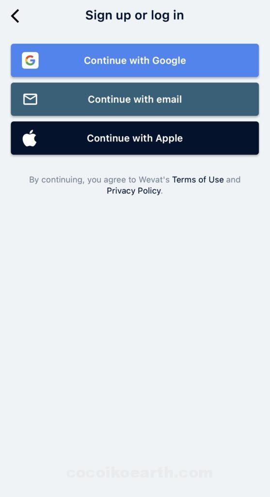 ①グーグル②メールアドレス③アップルアカウントからサインアップ方法(登録方法)を選択。適宜、個人情報を入力します。