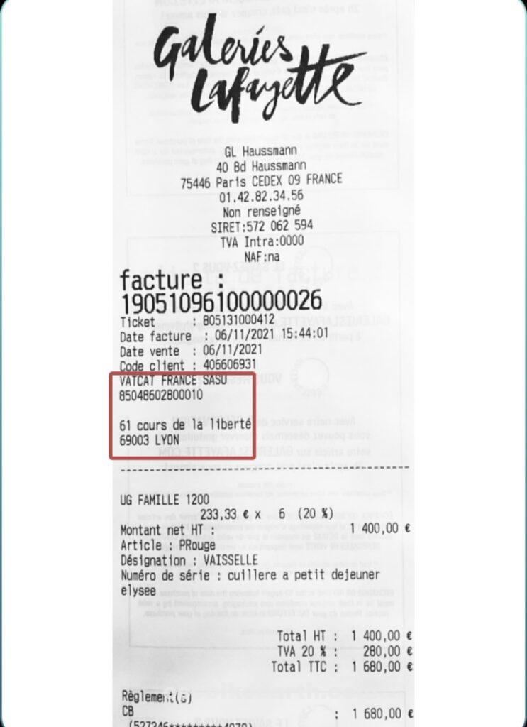 - 免税書類の宛先が「Vatct France:41 Cours de la Liberte,69003 Lyon」になっているか