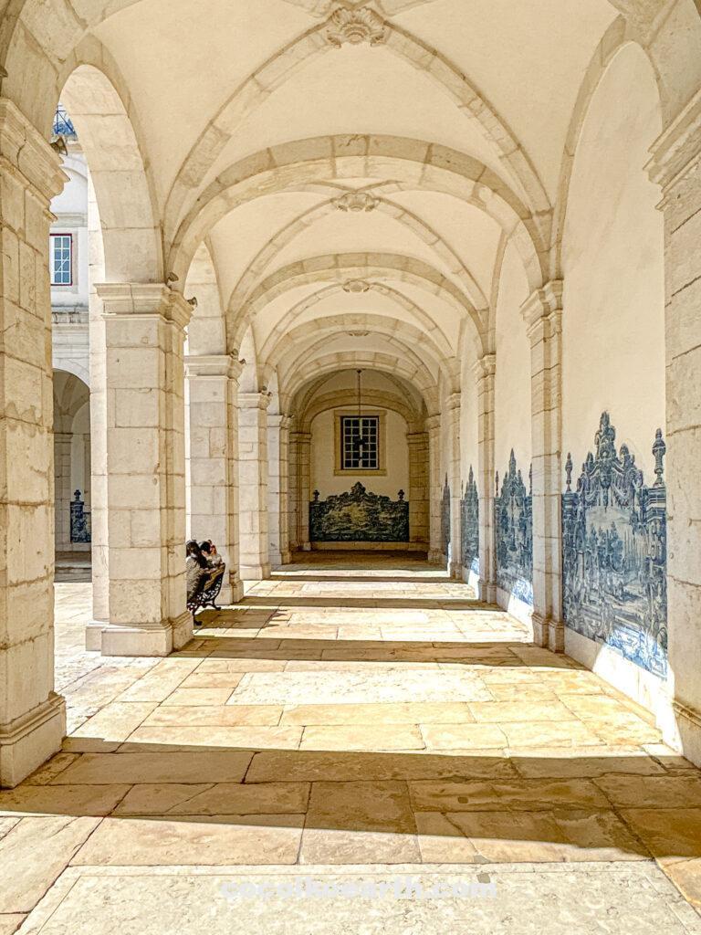 この教会の見どころはアズレージョで飾られた大きな回廊。