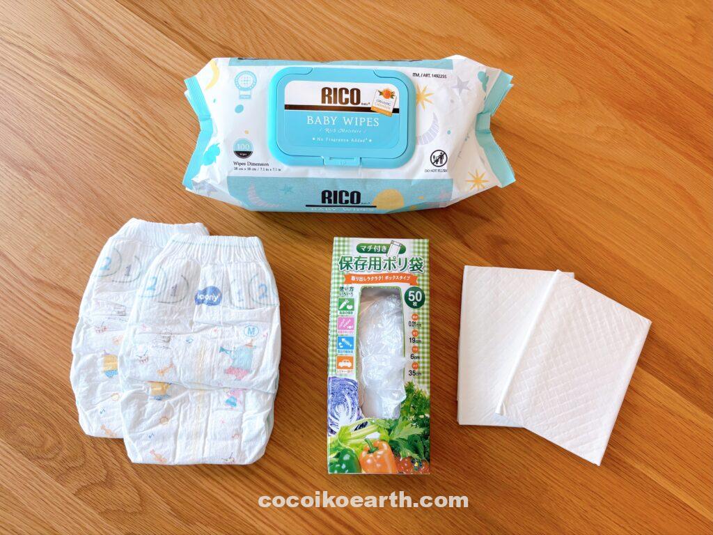 肌トラブルが起きやすいため、ベビーソープや保湿剤などは使い慣れたものを持参しました。