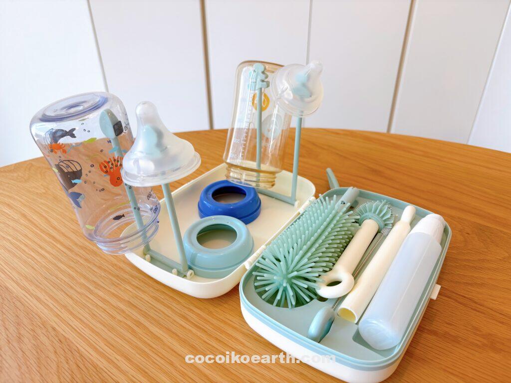 我が家はすでに消毒を卒業していたため、哺乳瓶用の洗剤と清掃グッズのみ持っていきました。