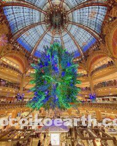店内にある大きな吹き抜けでは、毎年違った巨大クリスマスツリーを楽しむことができます。