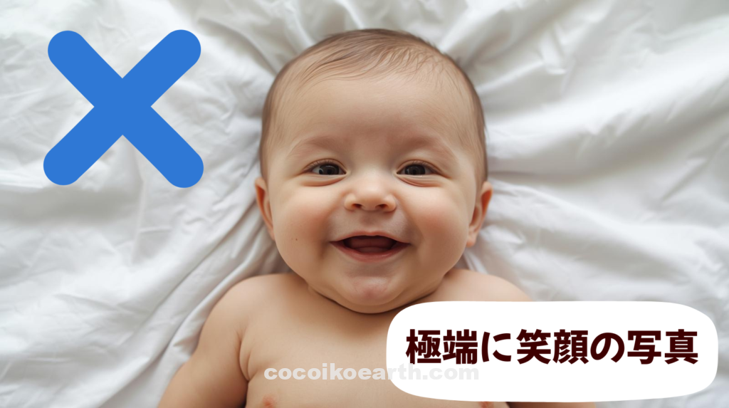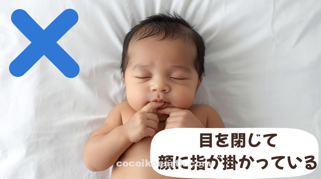 - 手などで赤ちゃんの顔が隠れるのはNGです。