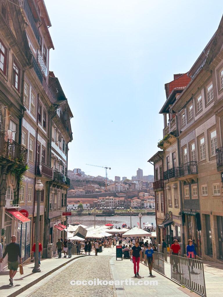 美しいドウロ川を望むこの通りには、カフェのテラス席やストリートミュージシャン、カラフルな家々が立ち並び、誰もが思い描くポルトの美しい街並みが広がっています。